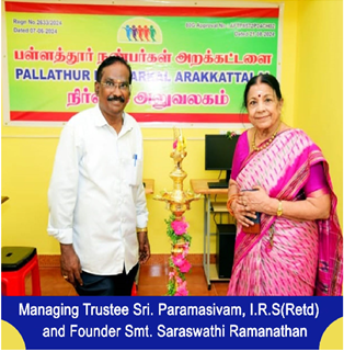Managing Trustee Sri P. Paramasivam, born as the tenth child to his illiterate parents, is the first in his family to have studied beyond the eighth standard. Through perseverance and dedication, he rose through the ranks and retired as an Assistant Commissioner of Income Tax.
